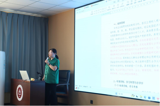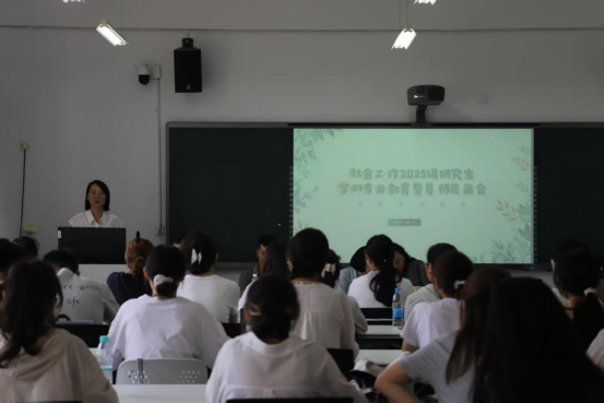 图3 胡彬彬教授为2025级社会工作硕士研究生新生介绍培养方案