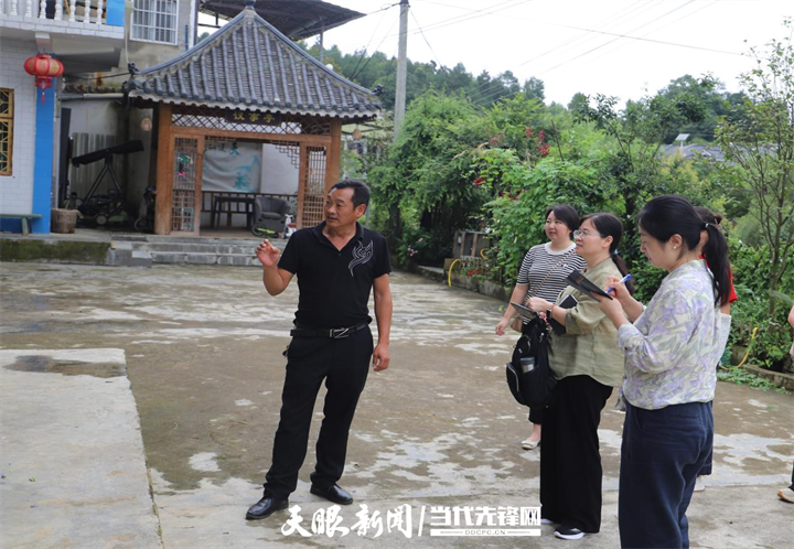 师生组成的校媒融合调研组走进湄潭县抄乐镇,探访当地农村互助养老实施情况。