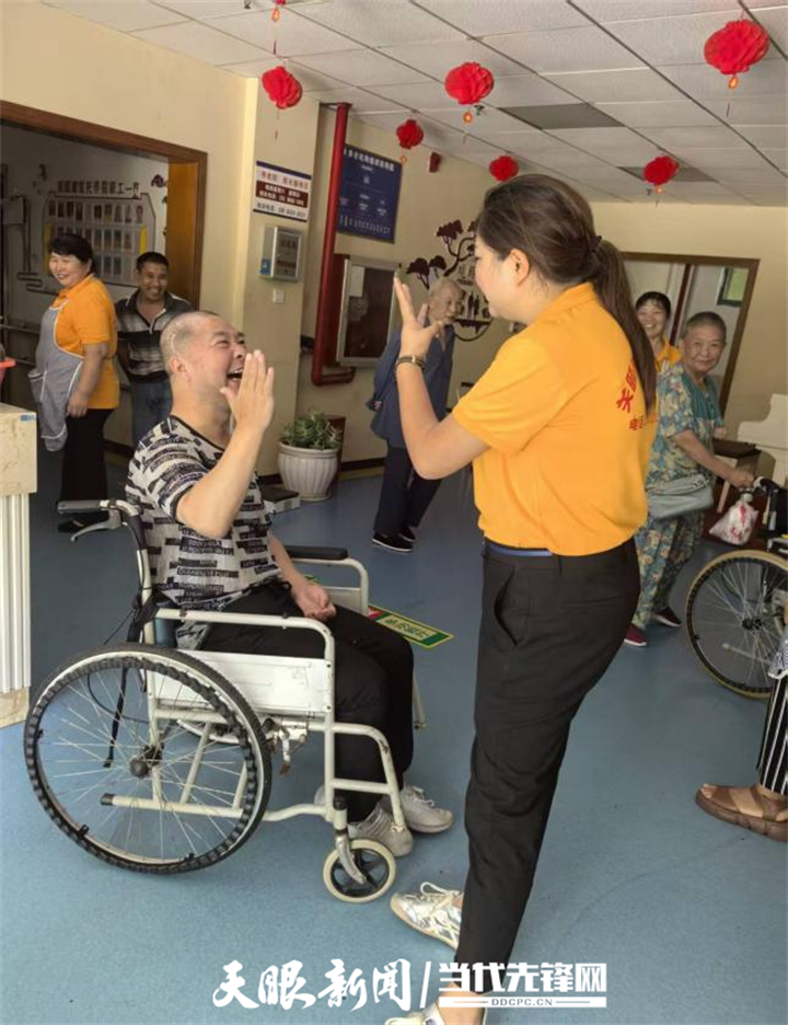 患有脑梗的平元宽老人,入院时全瘫痪,经过院里工作人员的悉心照顾,如今自己能推着轮椅在大厅活动,并且能够认识人、打招呼。“都说老还小,这些老人们都喜欢被孩子一样对待。”周尚易说,院里的每一位入住老人都有昵称,他们也称自己“美女姐姐”,这样的称呼让大家都觉得很亲近。