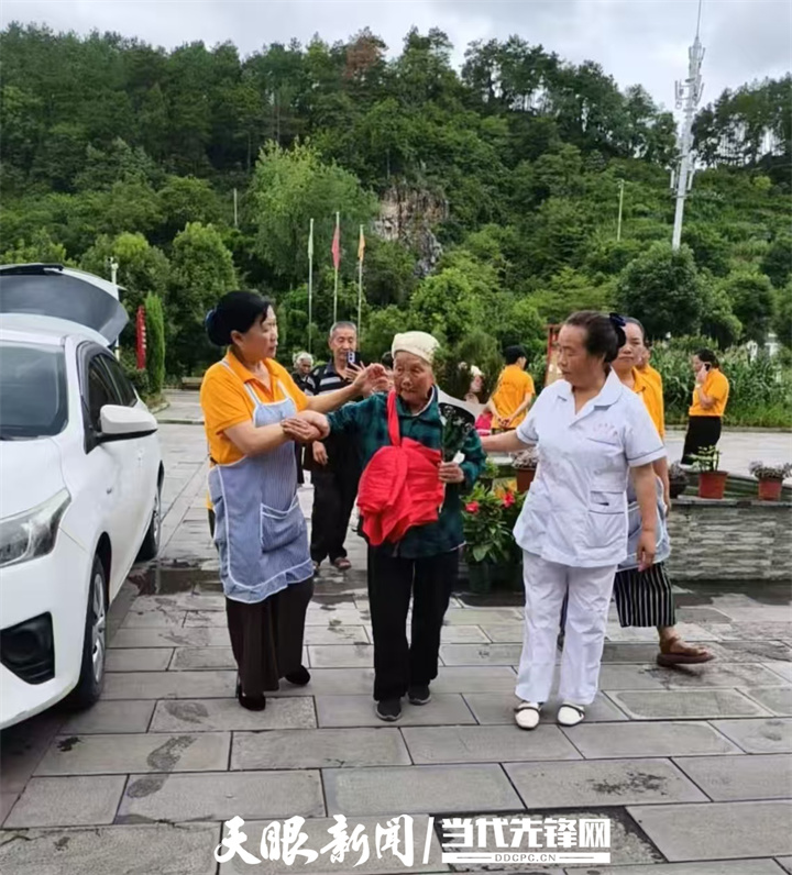 农村养老服务调研组刚走进位于遵义市播州区的贵州观颐康复养老院,就听到一阵整齐有序的敲锣打鼓声。原来是院里又迎来了一位入住老人周兴才。工作人员为周兴才老人送上鲜花,搀扶着她走进房间。“这位是享受国家政策的高龄低保老人,不需要交一分钱。平时,每一位新来的入住老人,我们都会敲锣打鼓迎接他们,通过这样的仪式感,让他们有被重视的感觉。”贵州观颐康复养老院院长周尚易介绍。