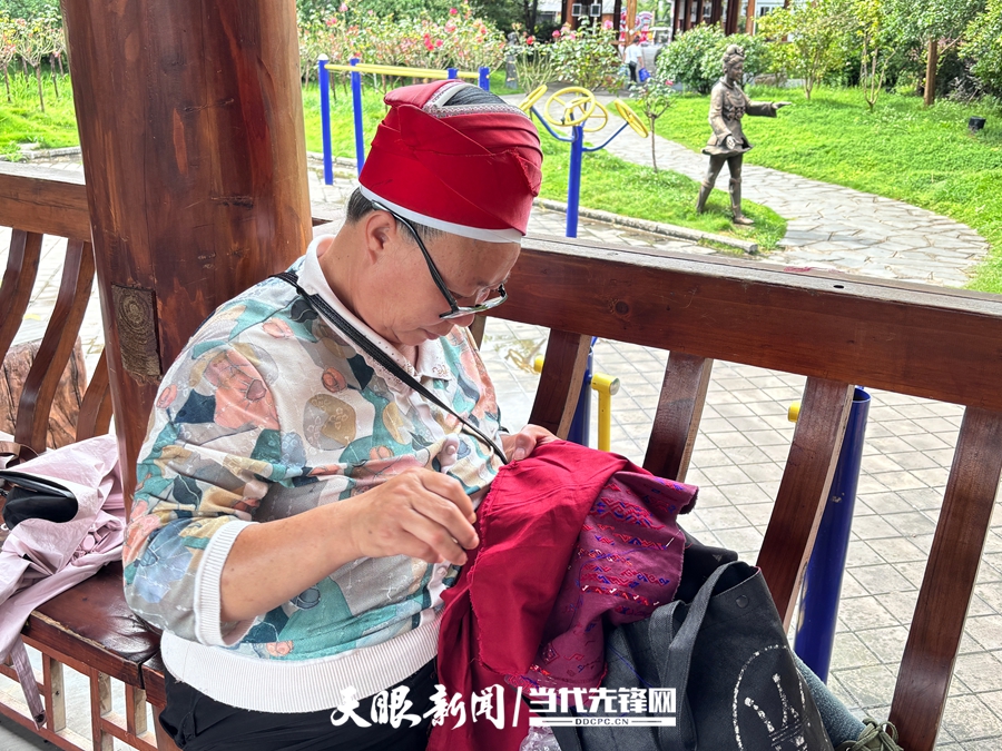 图6 苗族嬢嬢正在进行手工刺绣