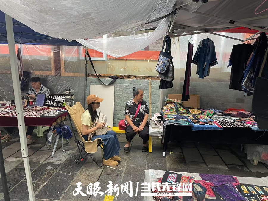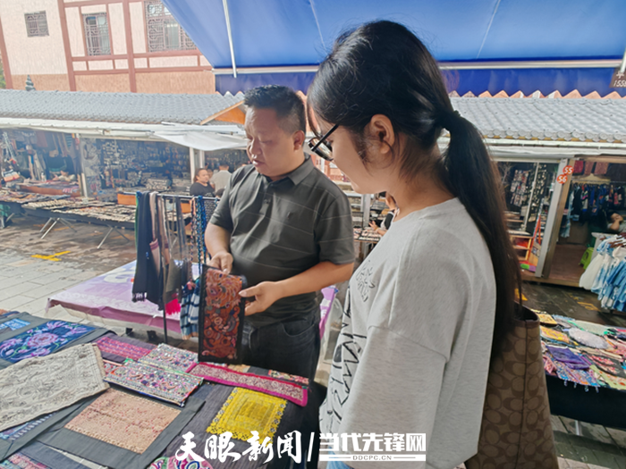 7月25日,校媒融合调研组来到凯里市绣里淘非遗集市,听唐中花讲起二十多年间摆摊的变迁。