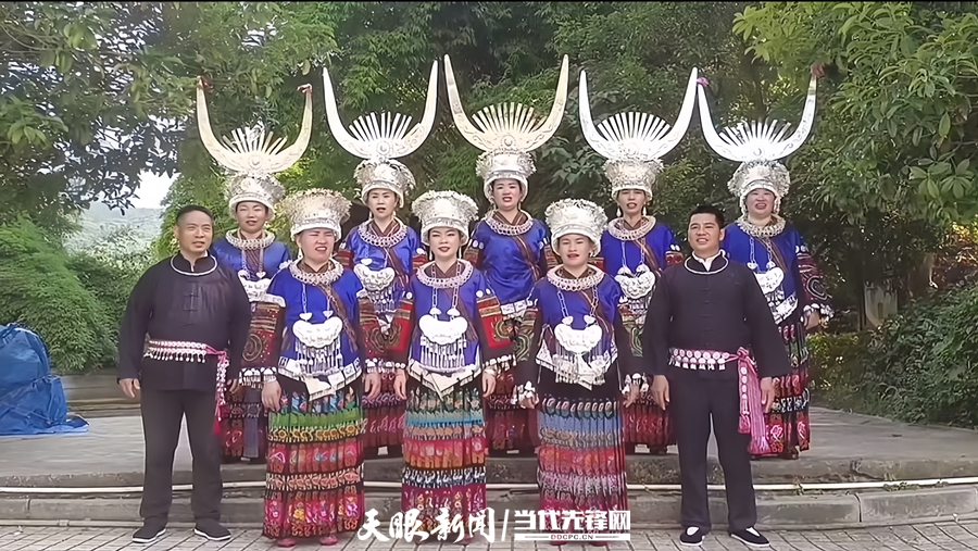 摊位稳了,这位爱美的苗族嬢嬢,生活也变得丰富多彩。她翻出手机里的视频,屏幕上的她穿着苗族盛装,在芦笙舞比赛的舞台上笑得灿烂,她还捧着自己缝制的盛装,走过T台。