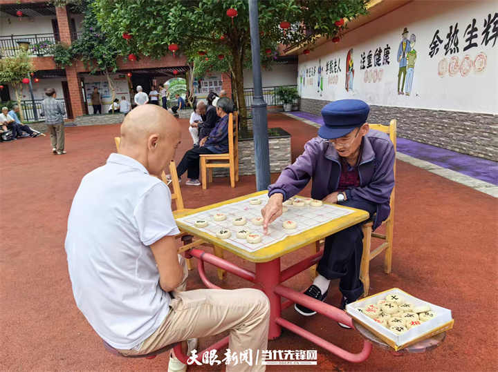 享用了工作人员精心准备的早餐——炸酱粉和鸡蛋,老人们心满意足地开始了一天的生活:院落里,三三两两围坐在一起摆龙门阵、下象棋;房间里,全自理老人帮助失能老人换上干净衣服后,一同看起了电视;走廊上、厨房外,全自理老人打扫卫生、帮忙择菜,有说有笑,其乐融融……