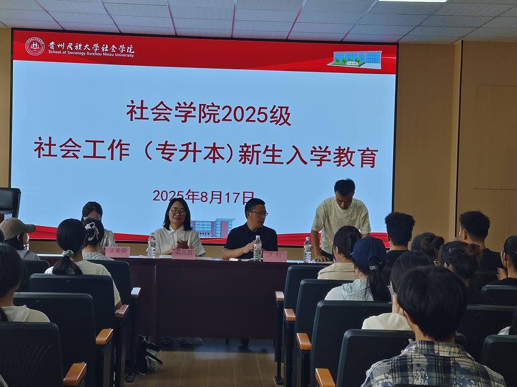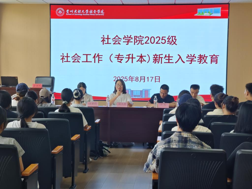 从迎新时的热忱相迎,到入学教育的细致指引,学院高度重视,用温度和深度为2025级社会工作专升本新生筑牢成长基石。未来,学院将继续以专业育人为核心,陪伴新生在知识探索中突破自我,在实践磨砺中沉淀价值,让专升本不仅是学历进阶,更是社会工作者职业理想的启航。今朝新梦正开头,青春因奋斗而闪耀,梦想因拼搏而绽放,愿2025级专升本新生在贵州民族大学的校园里,收获学业成长与人生蜕变,以昂扬姿态书写属于自己的精彩篇章,让“社院人”的担当与温度,在服务社会中熠熠生辉。