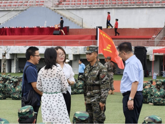 领导一行驻足观看训练细节,主动俯身与新生亲切交流,详细询问“训练强度是否适应”“食宿保障是否到位”,并当场叮嘱后勤保障人员:“务必做实防晒防暑措施,全力为新生安全训练保驾护航。”