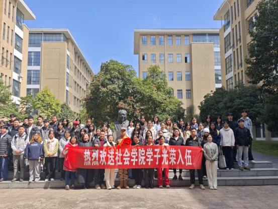 欢送仪式结束后,全体人员移步费孝通塑像前合影留念,挥手送别黄璨祥,祝愿他在军营建功立业,努力成为有灵魂、有本事、有血性、有品德的新时代革命军人。